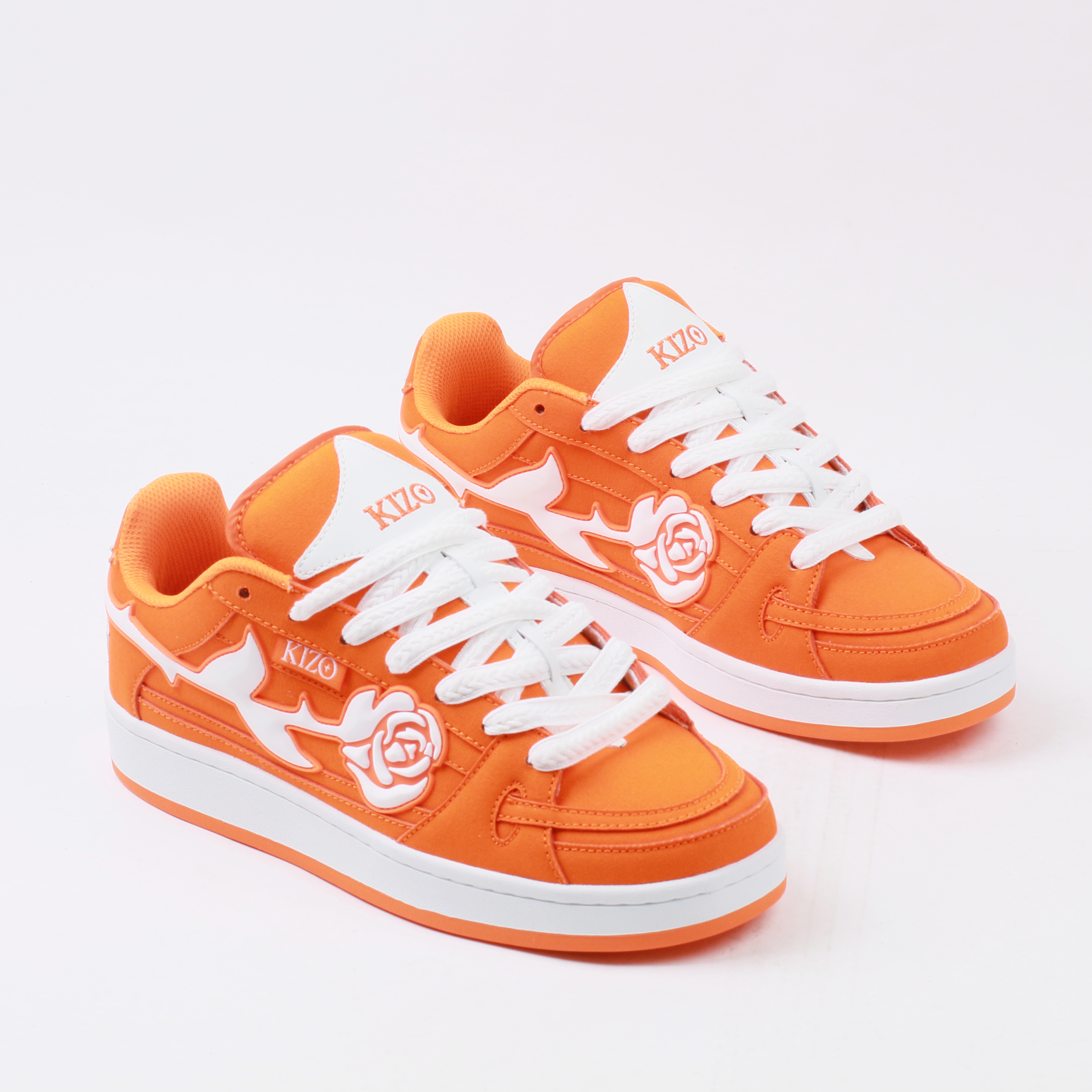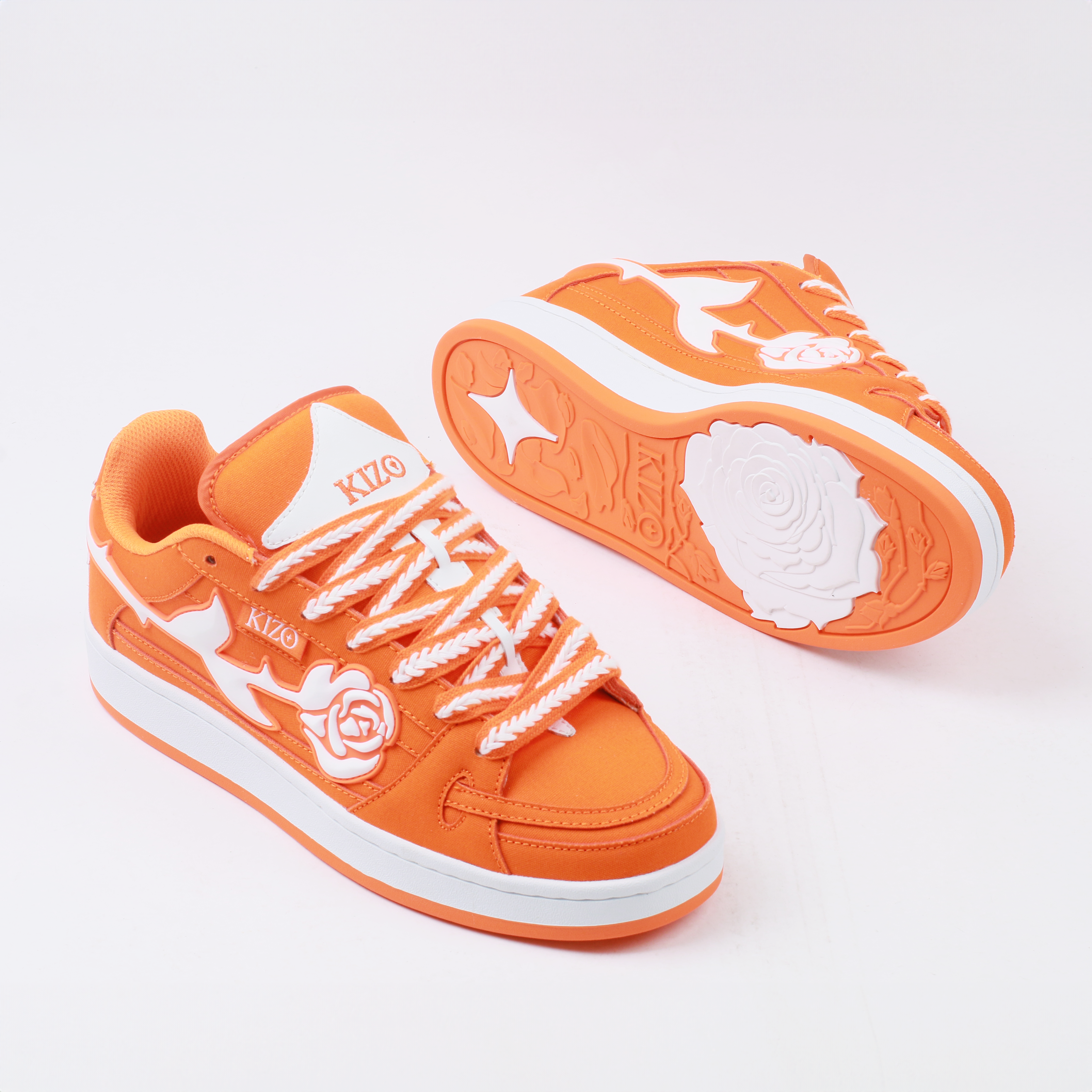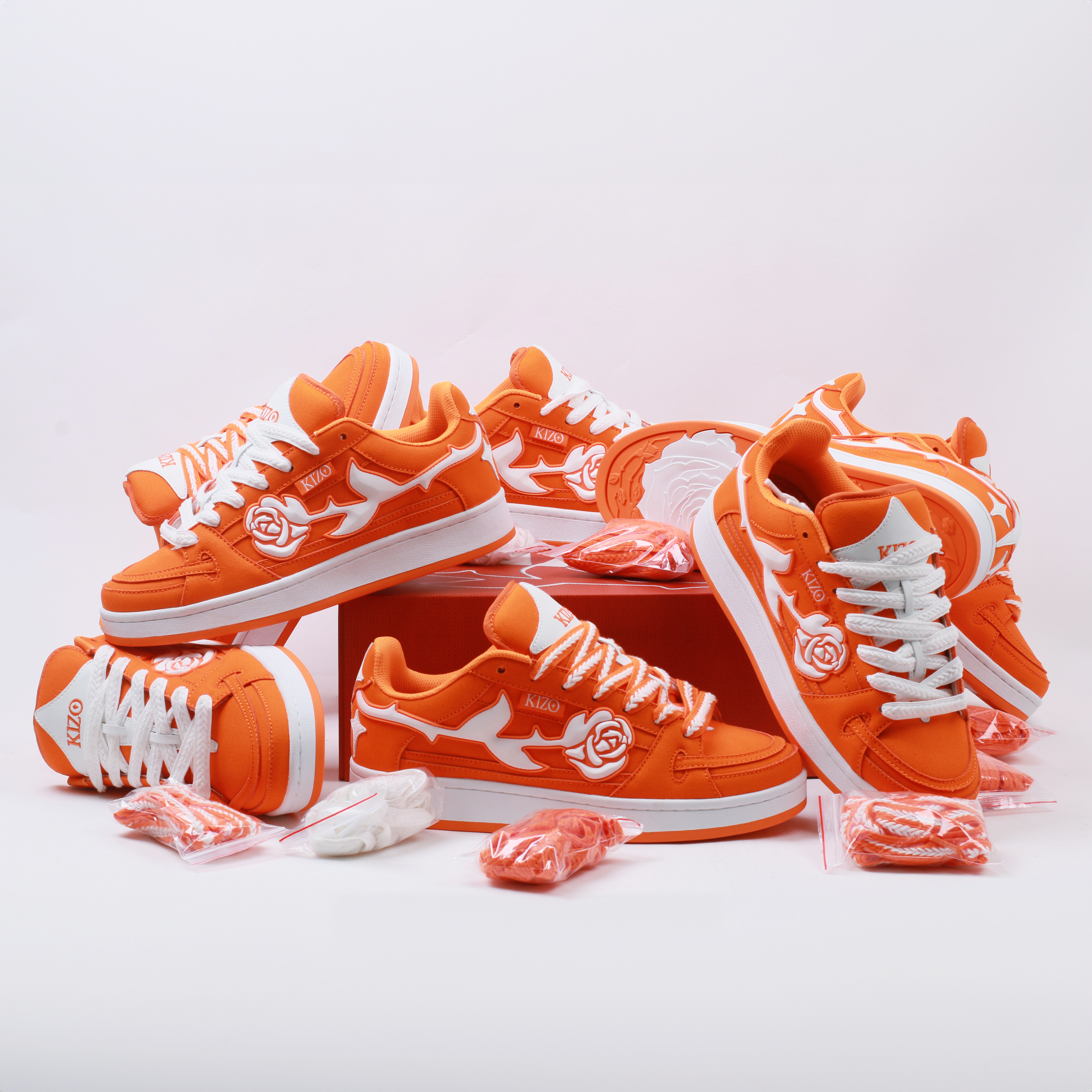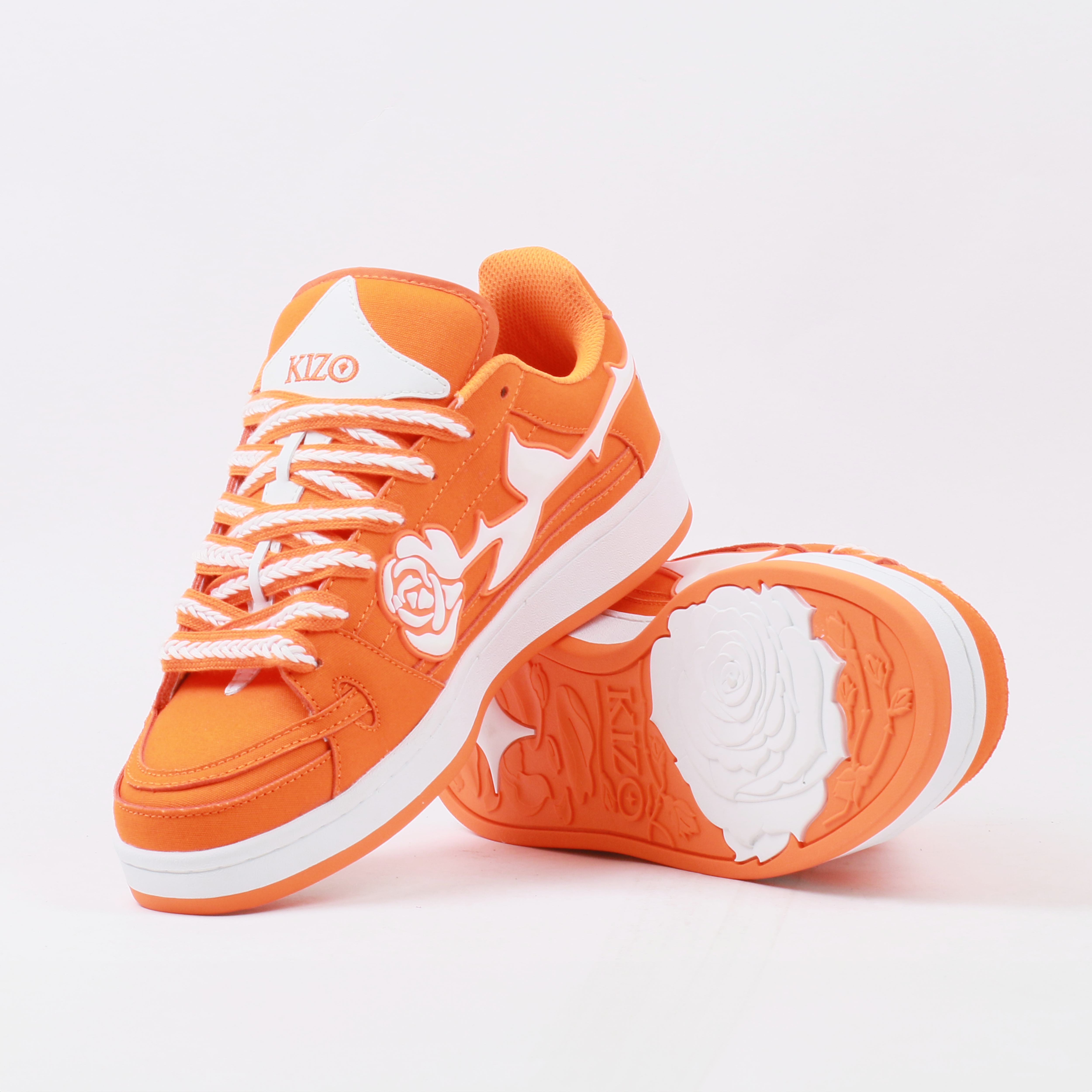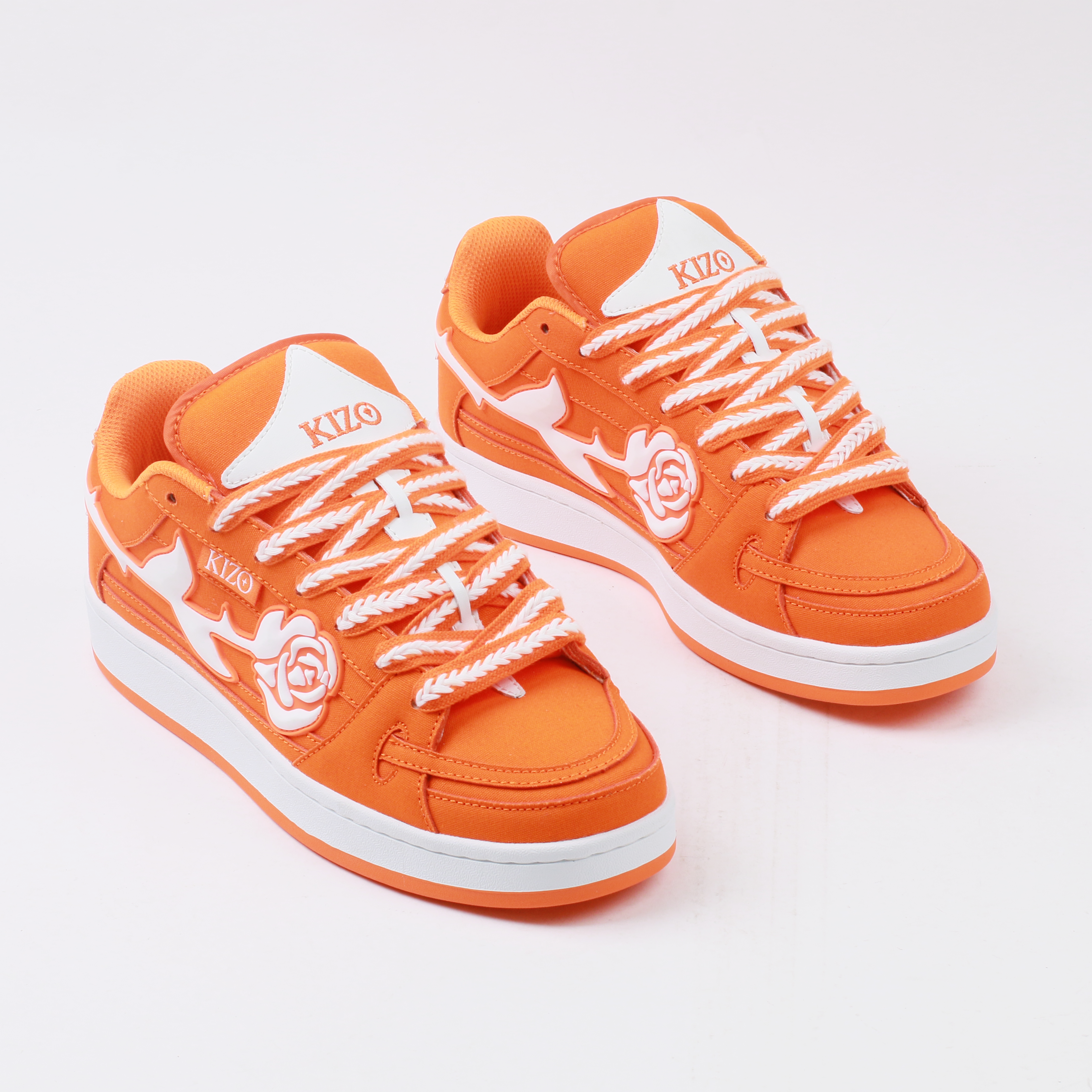 - 3 sets of woven flat laces (white,orange, and white/orange)