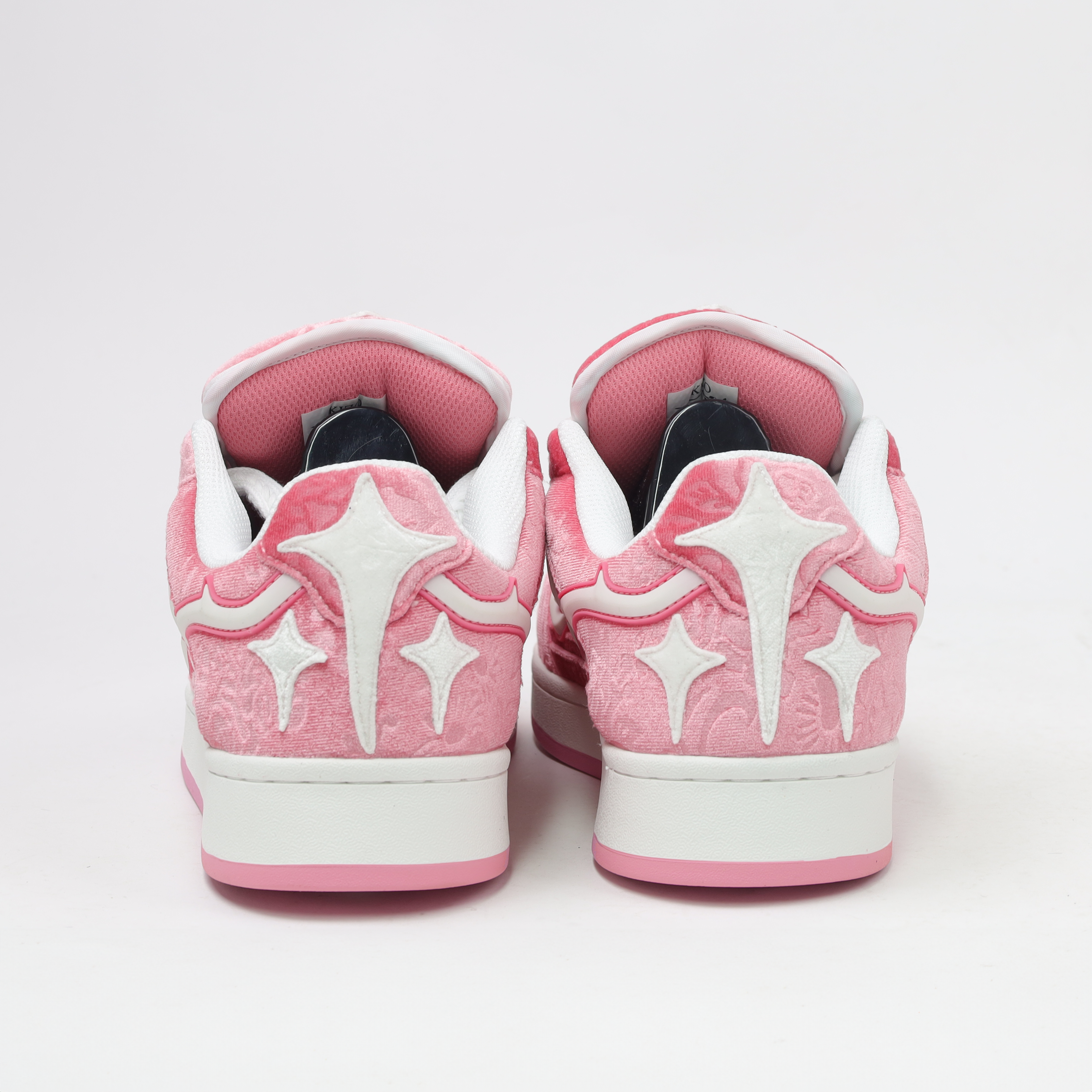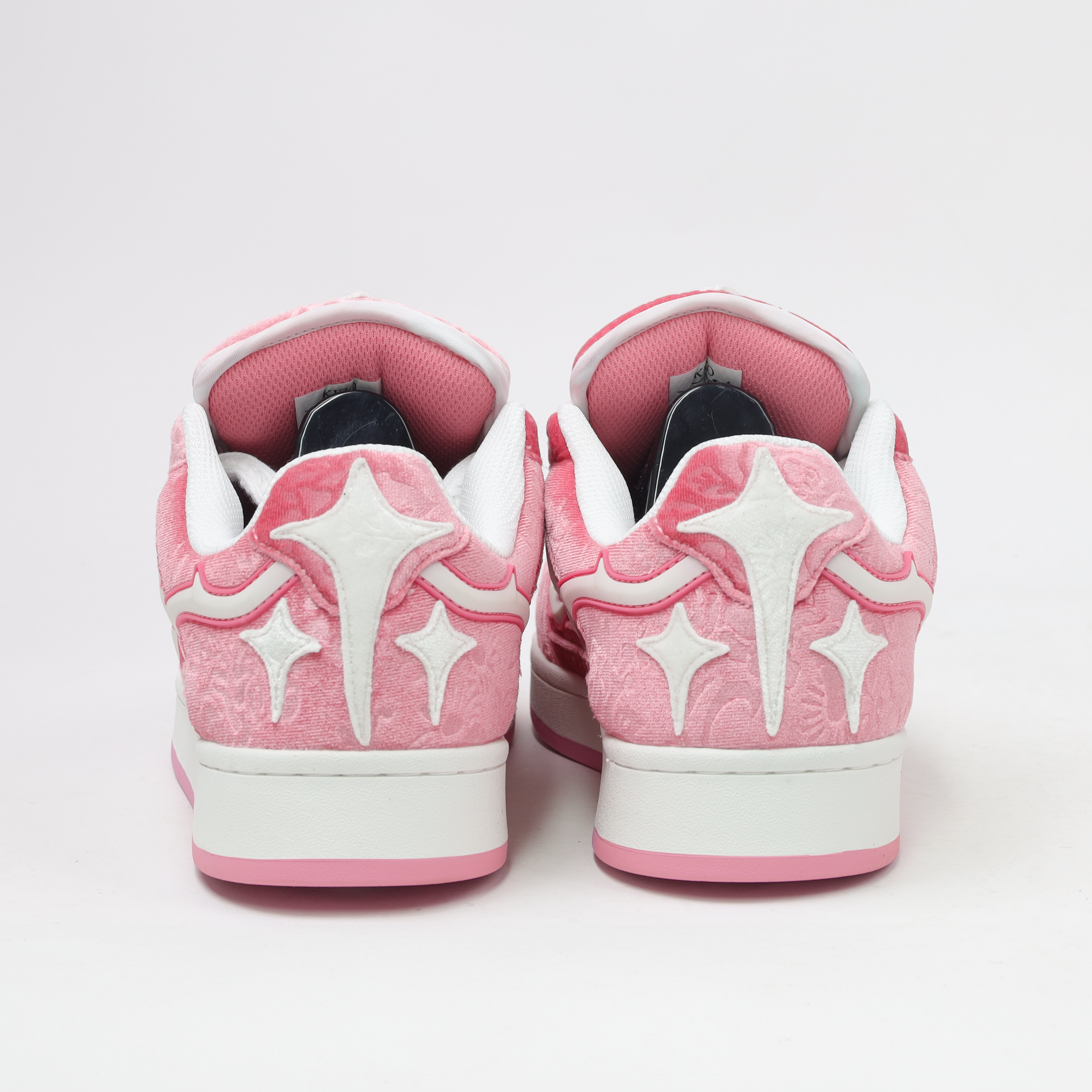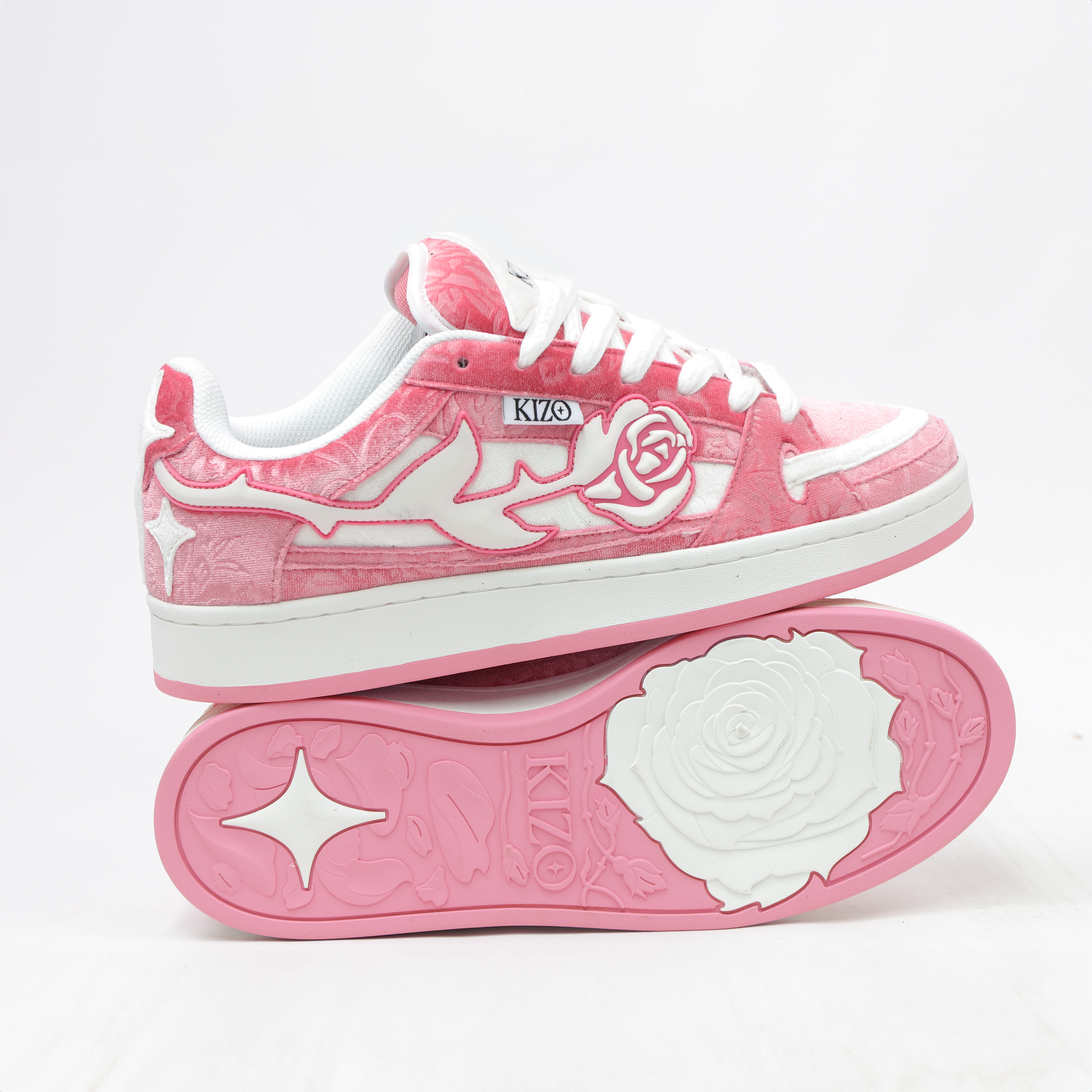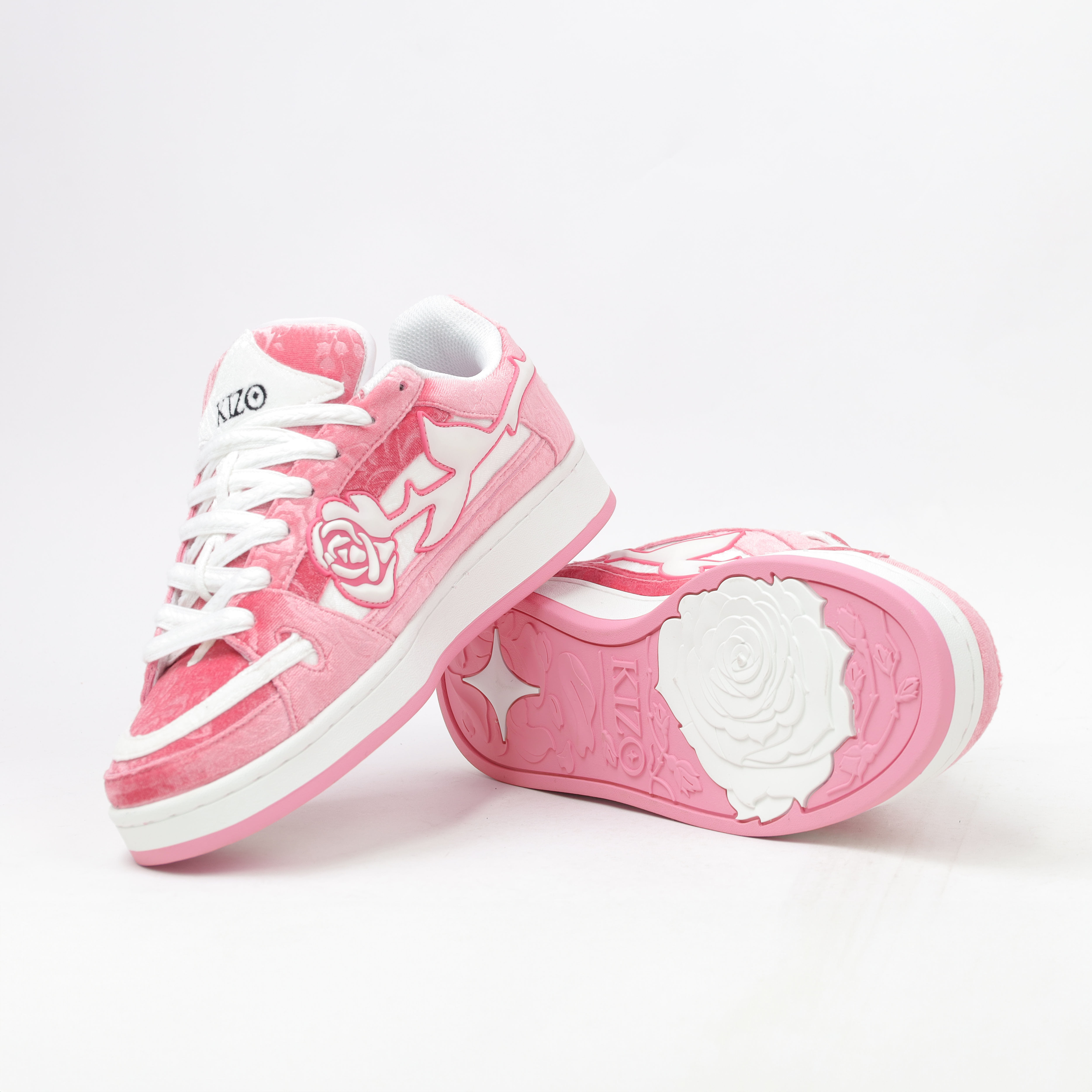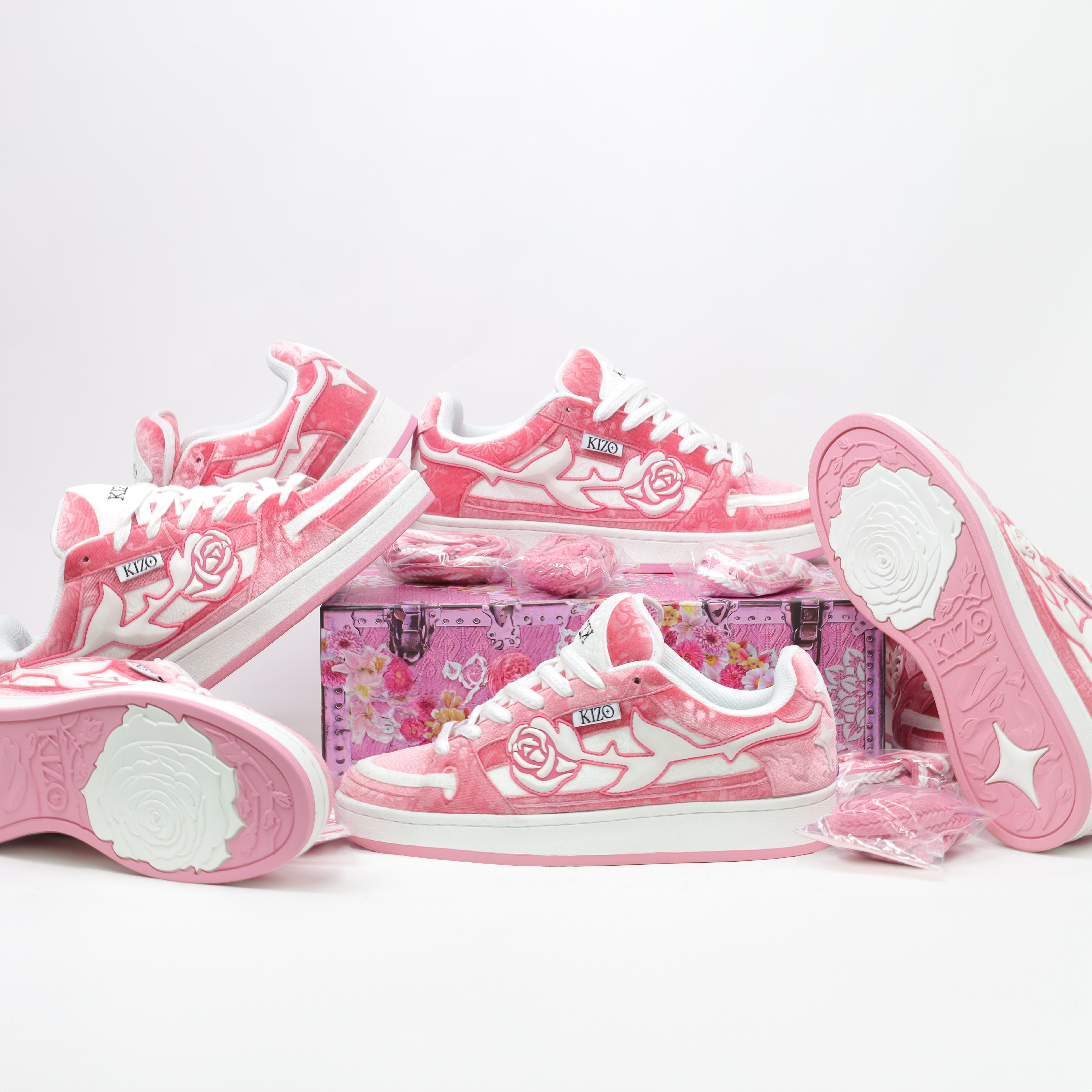 - 3 sets of woven flat laces (white, pink, and white/pink)