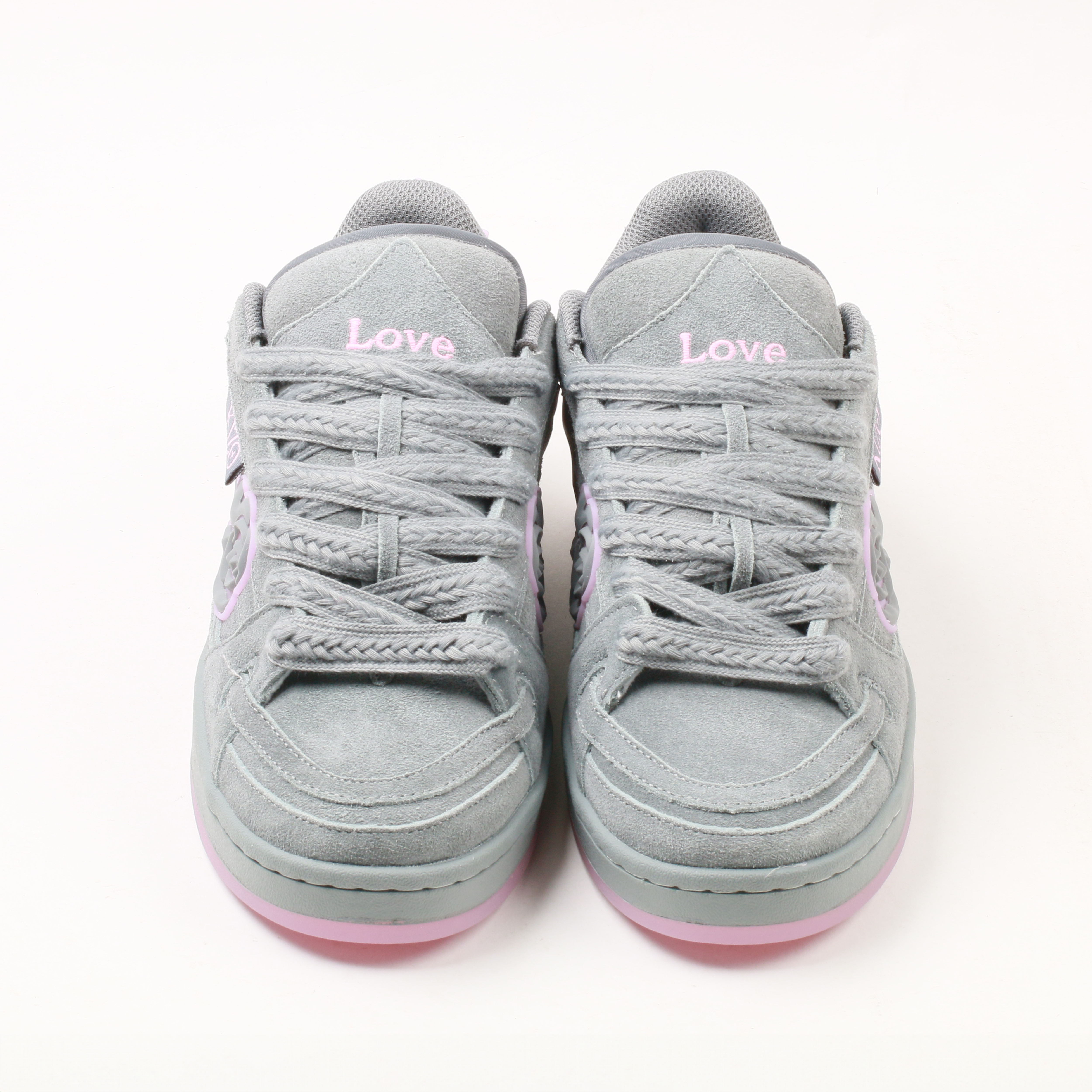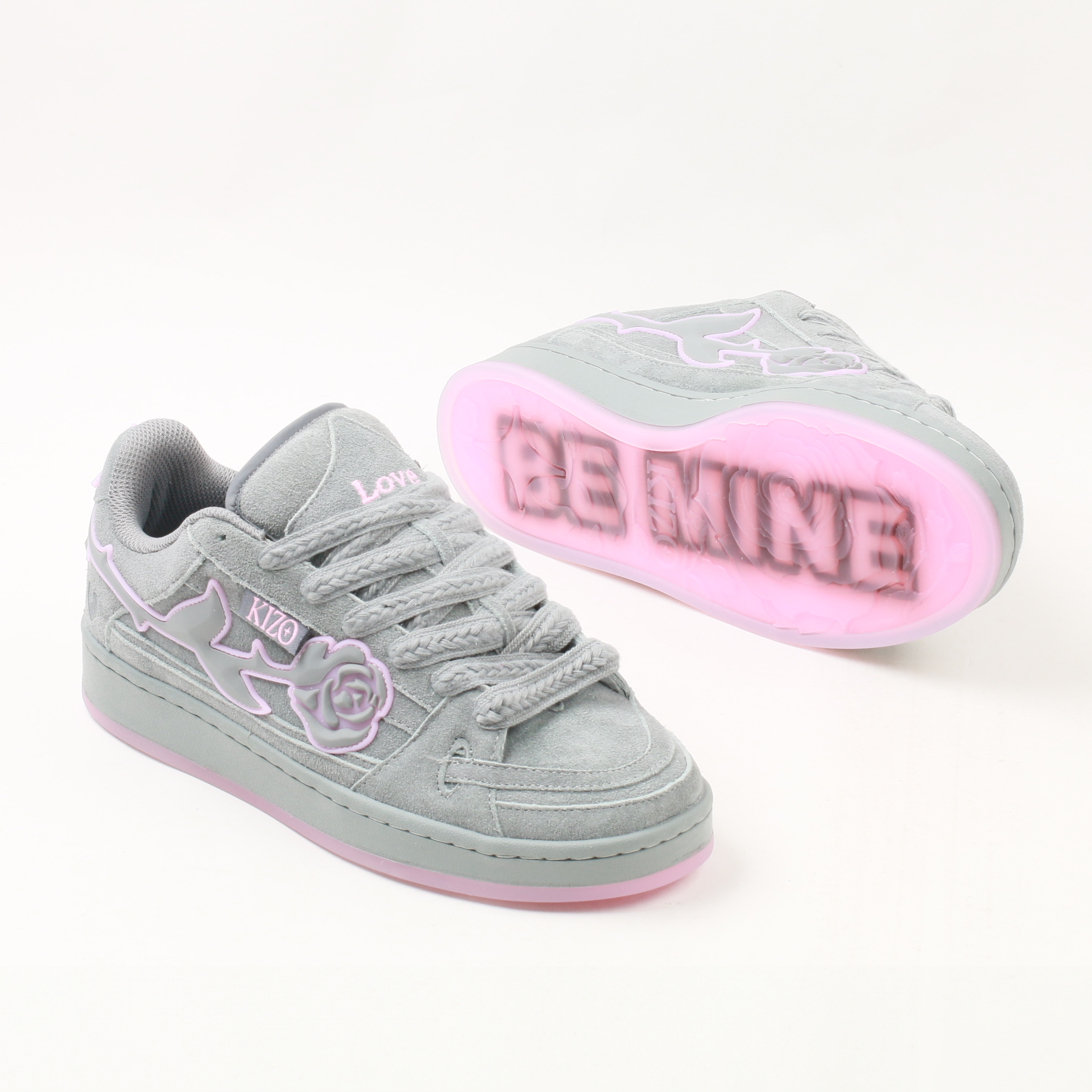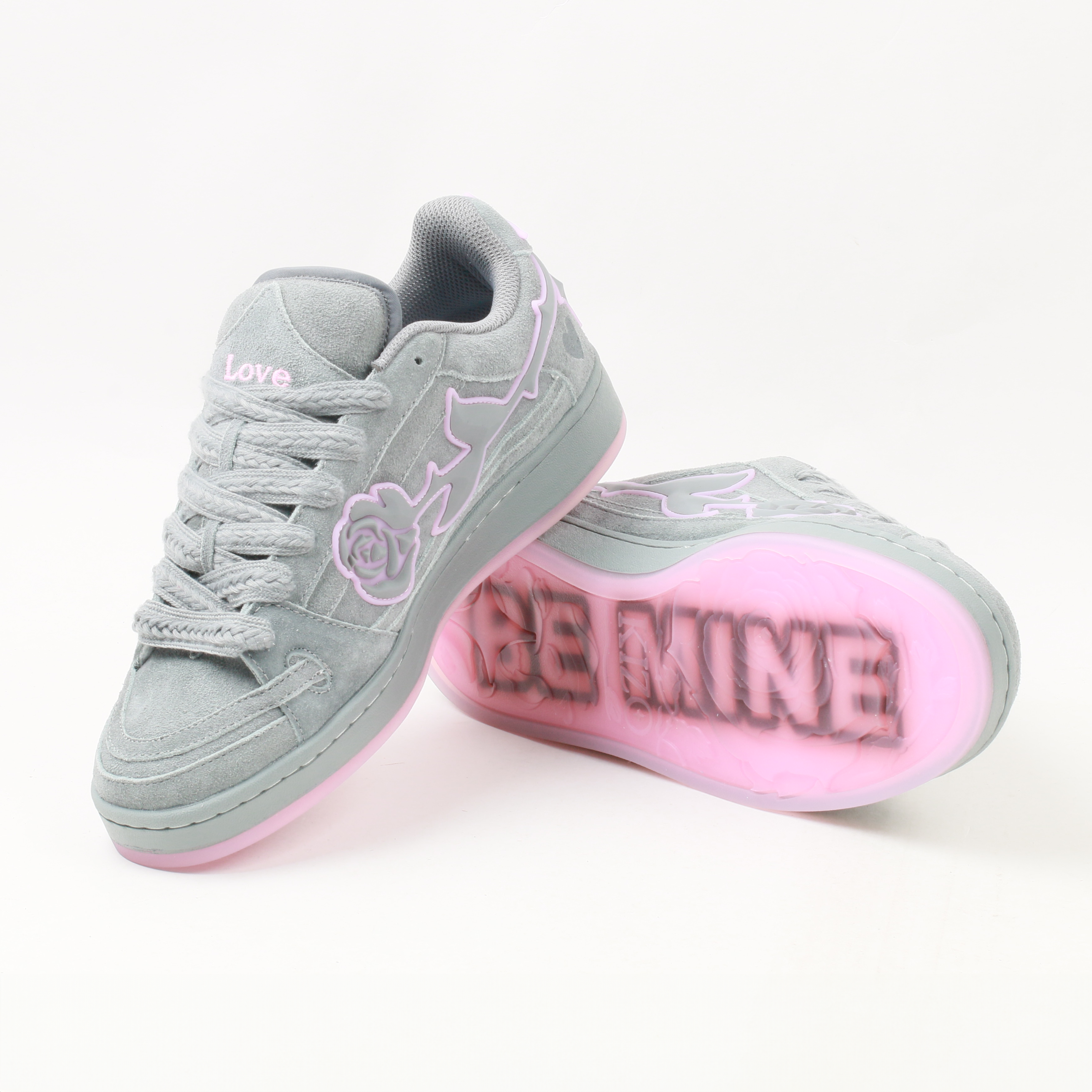 - 3 sets of woven flat laces (grey, pink, and grey/pink)