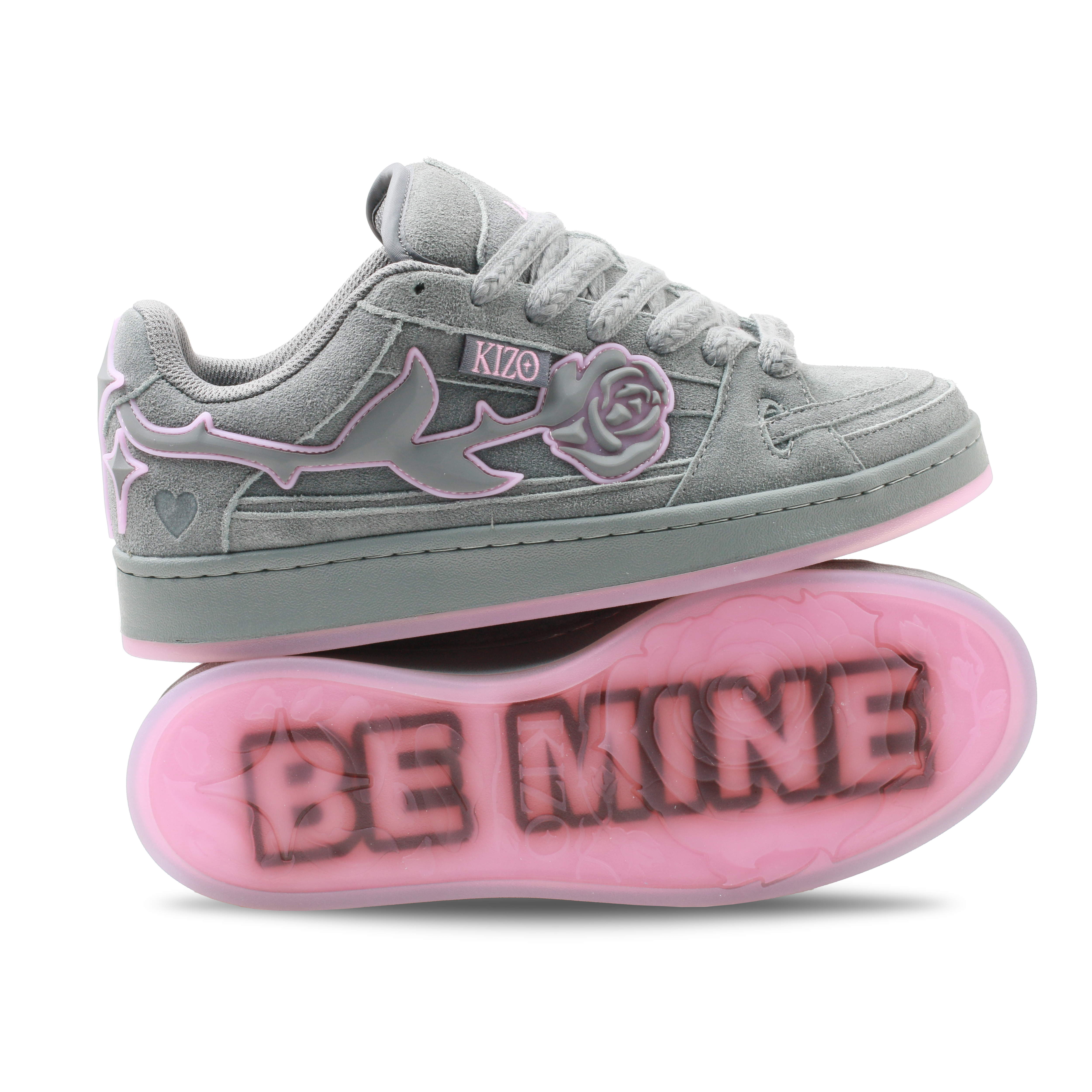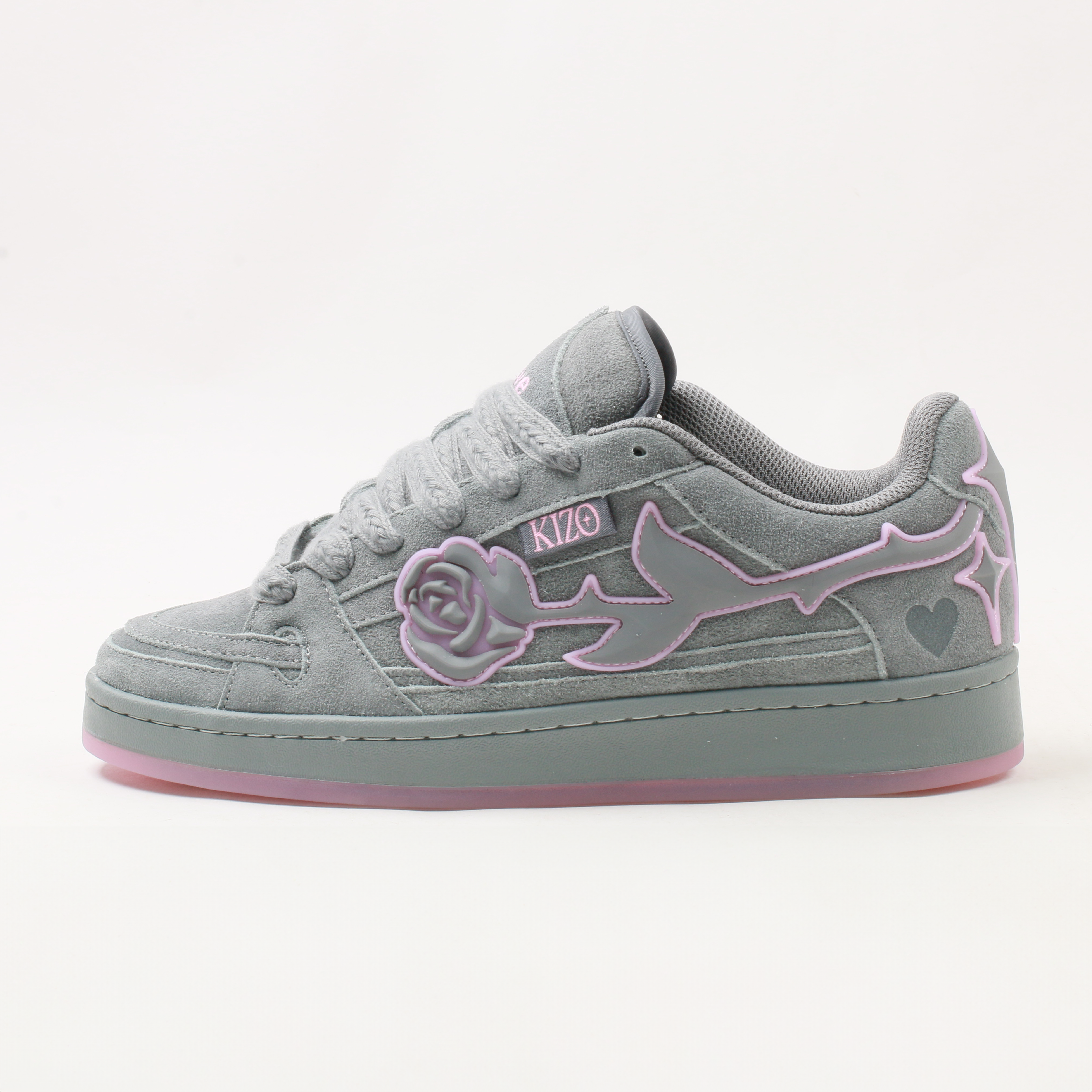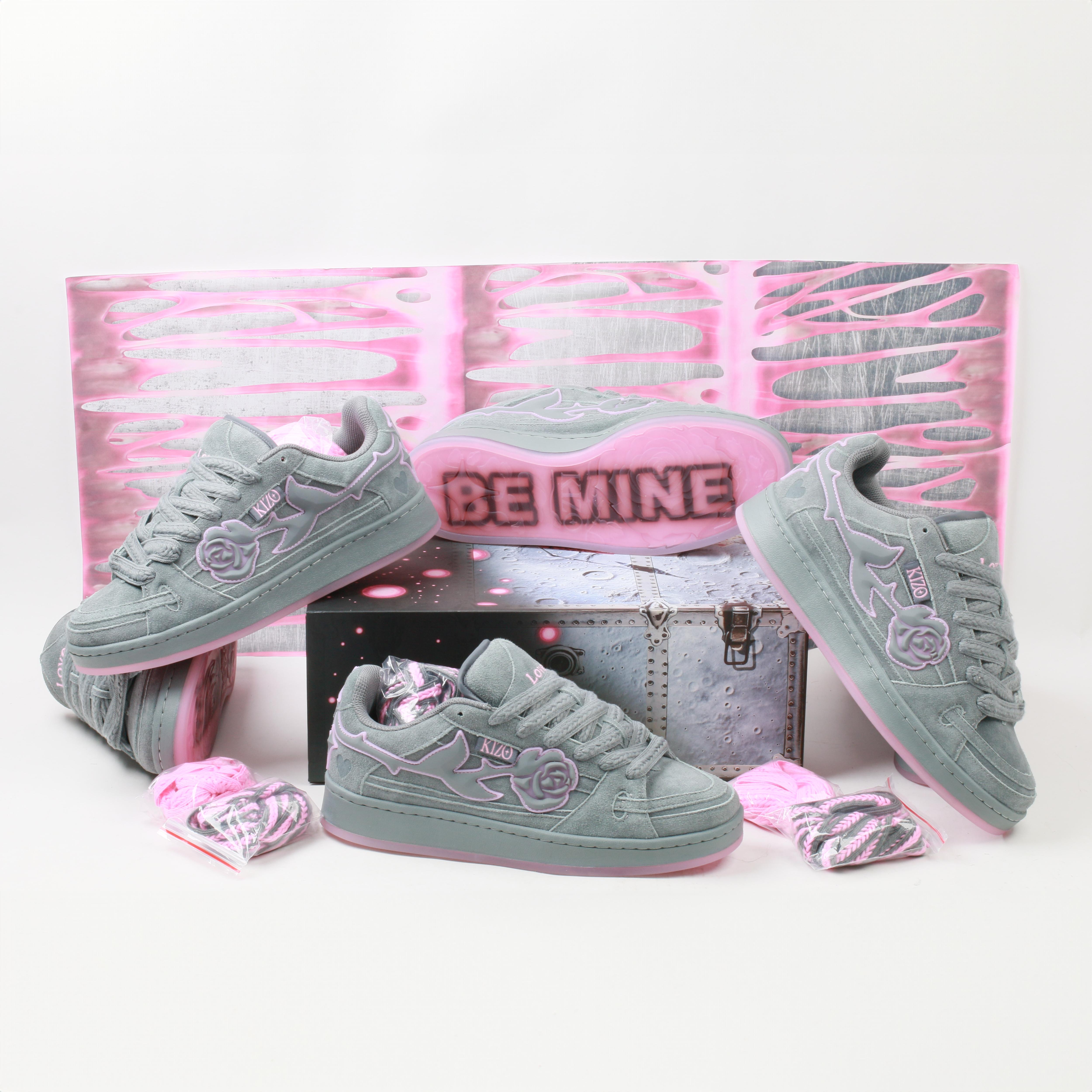 - 3 sets of woven flat laces (grey, pink, and grey/pink)